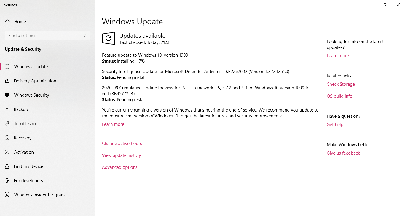 Windows 10, version 2004 file attributes. Windows 10, version 1903 and 1909 file attributes Navigate to update & security > windows update. Feb 11, 2020 · there are various windows 10 deployment scenarios available to install latest version of windows 10 1909. May 19, 2021 · upgrade to windows 10 21h1 from version 1909.